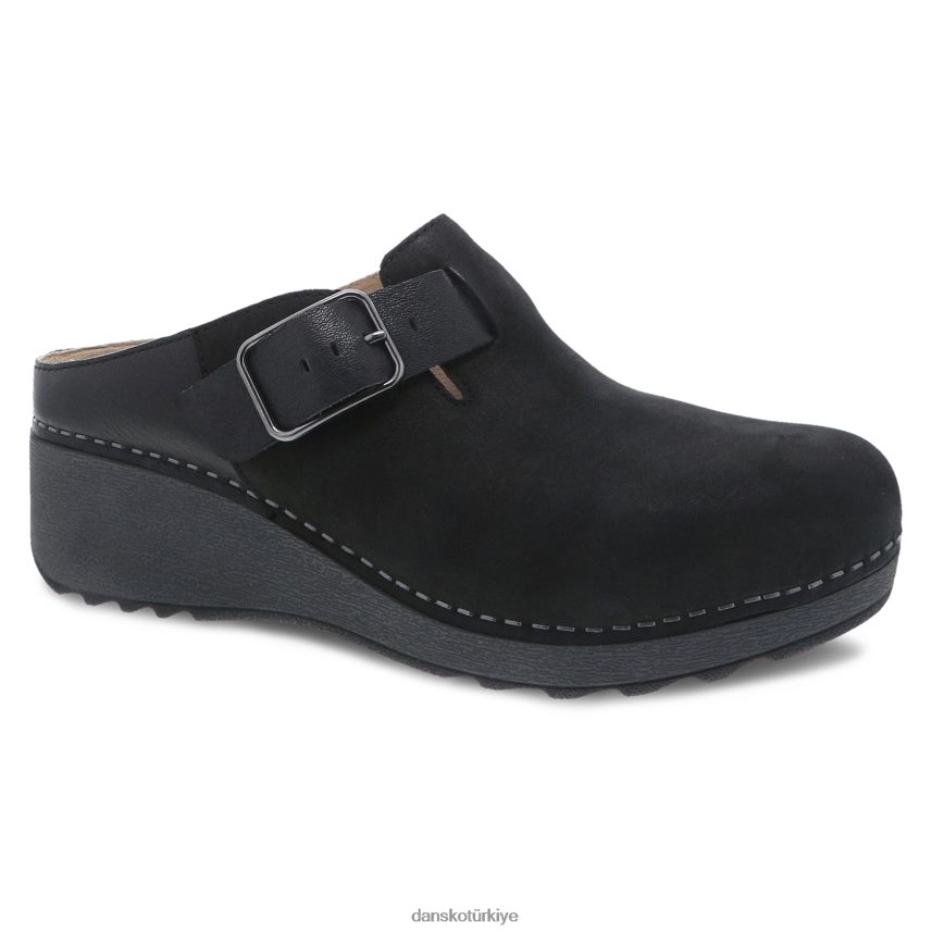 Dansko kadınlar CAIA Siyah freze nubuck katırlar ve kayma FD66Z0183 Dansko Booties